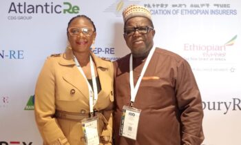 From left: Assist General Manager/Head, Lagos Regional Offices, Sovereign Trust Insurance Plc, Deborah Ugbaje and Executive Director Technical, Emmanuel Anikibe at the ongoing 51st AIO conference in Ethiopia, Addis-Ababa.